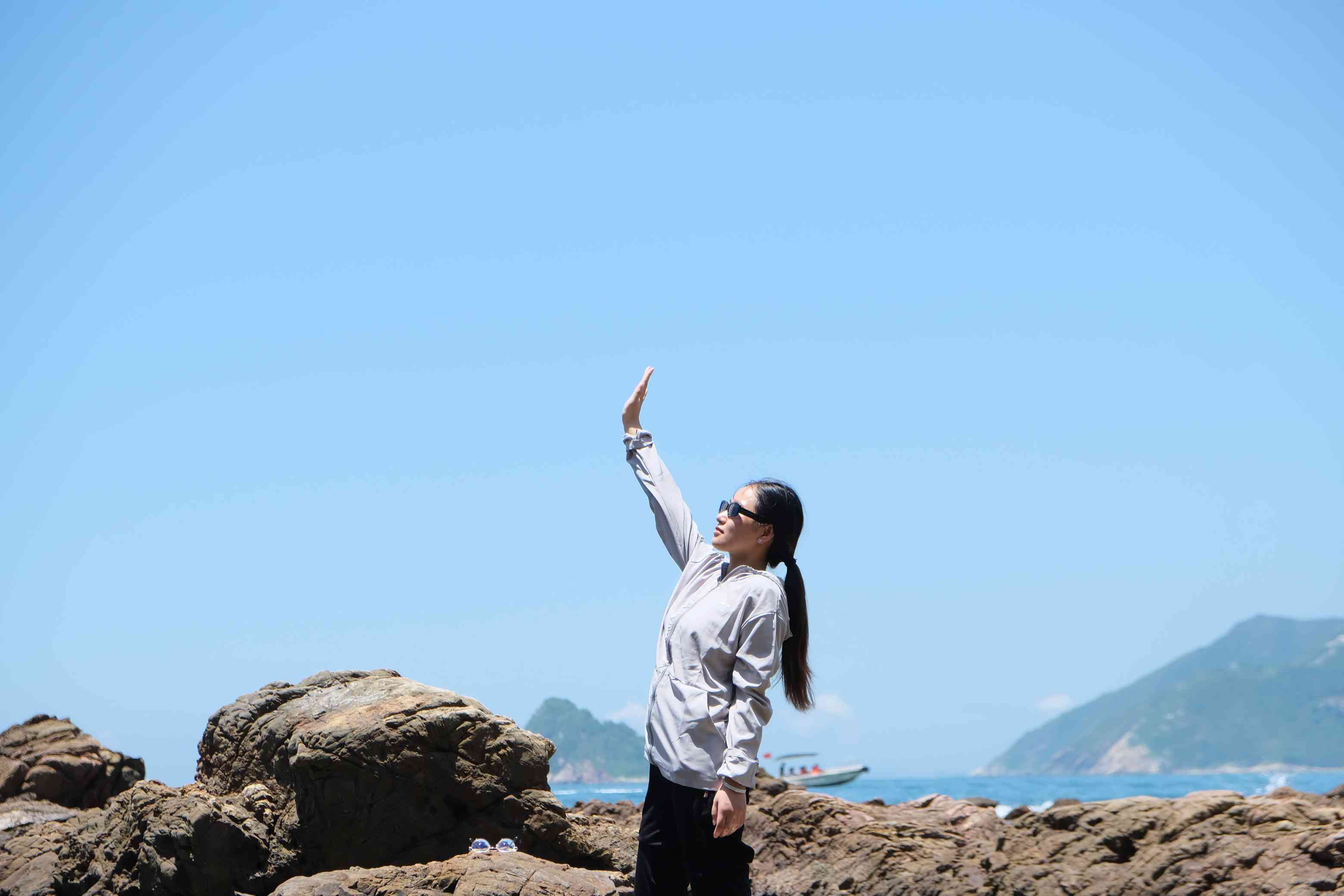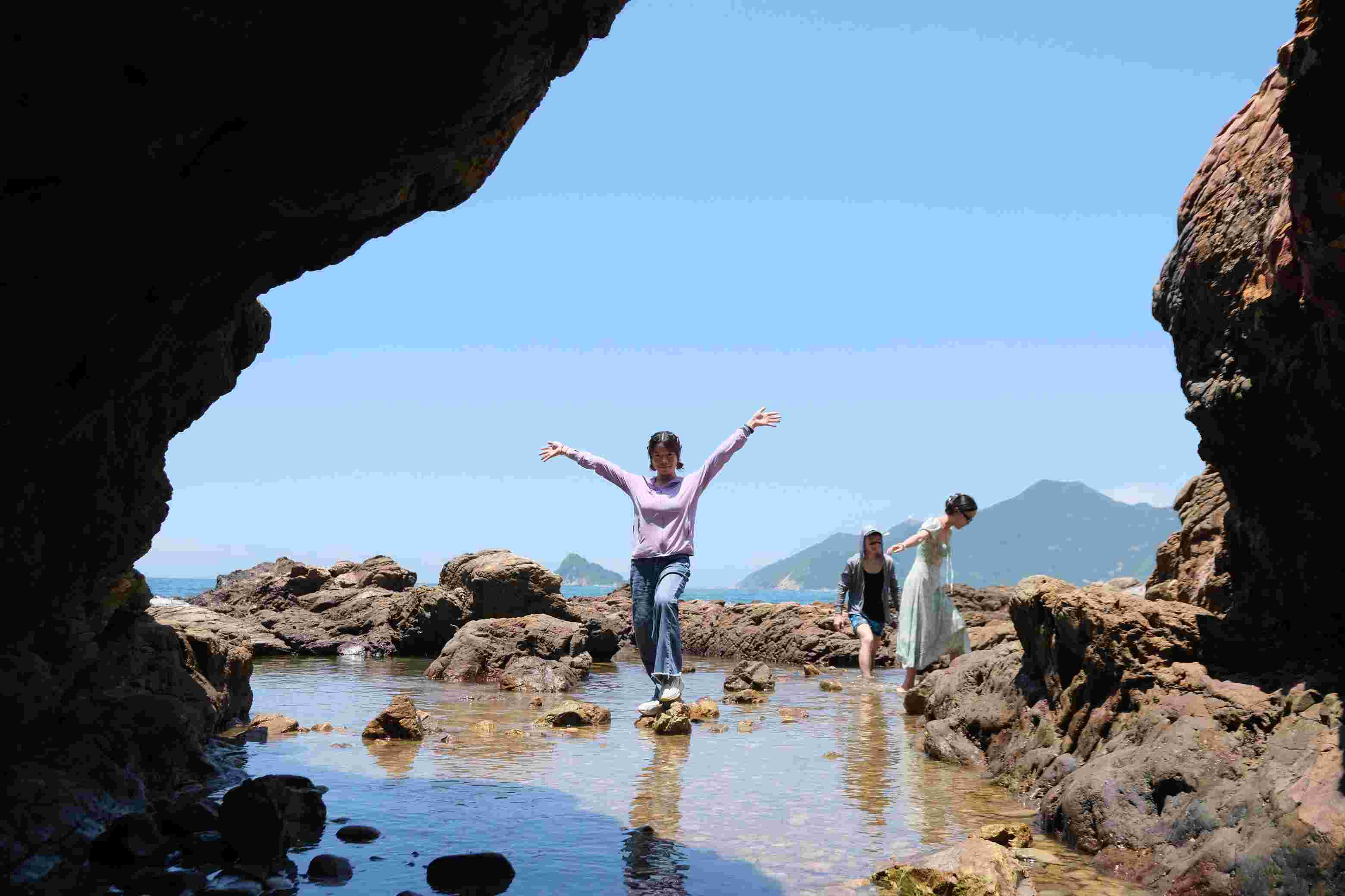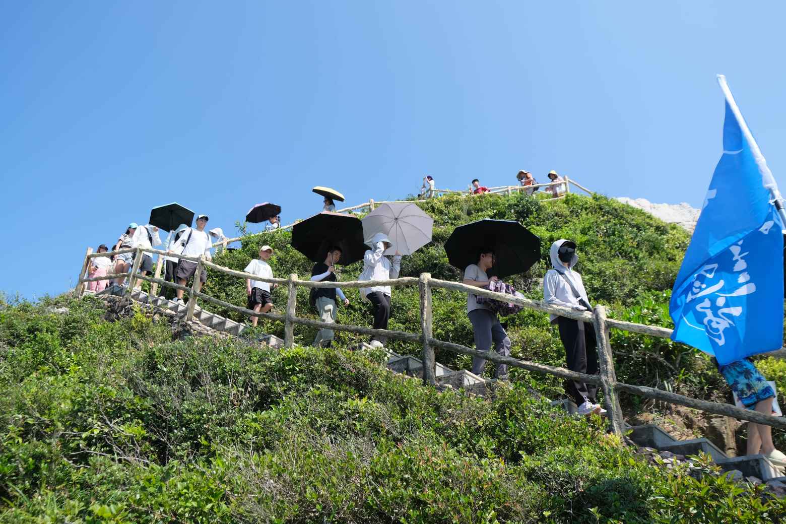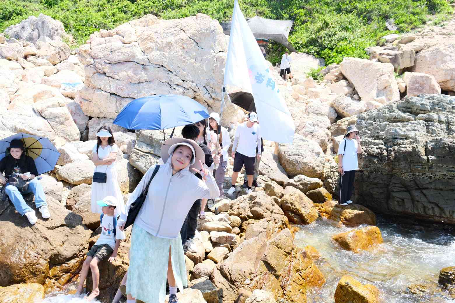 陽光灑在海面上,形成一片閃耀的銀色光澤。海風輕拂著臉龐,帶來陣陣微咸的氣息。大家踩著沙石,與蔚藍的海洋和無垠的天空作伴,沿著計劃路線前進。